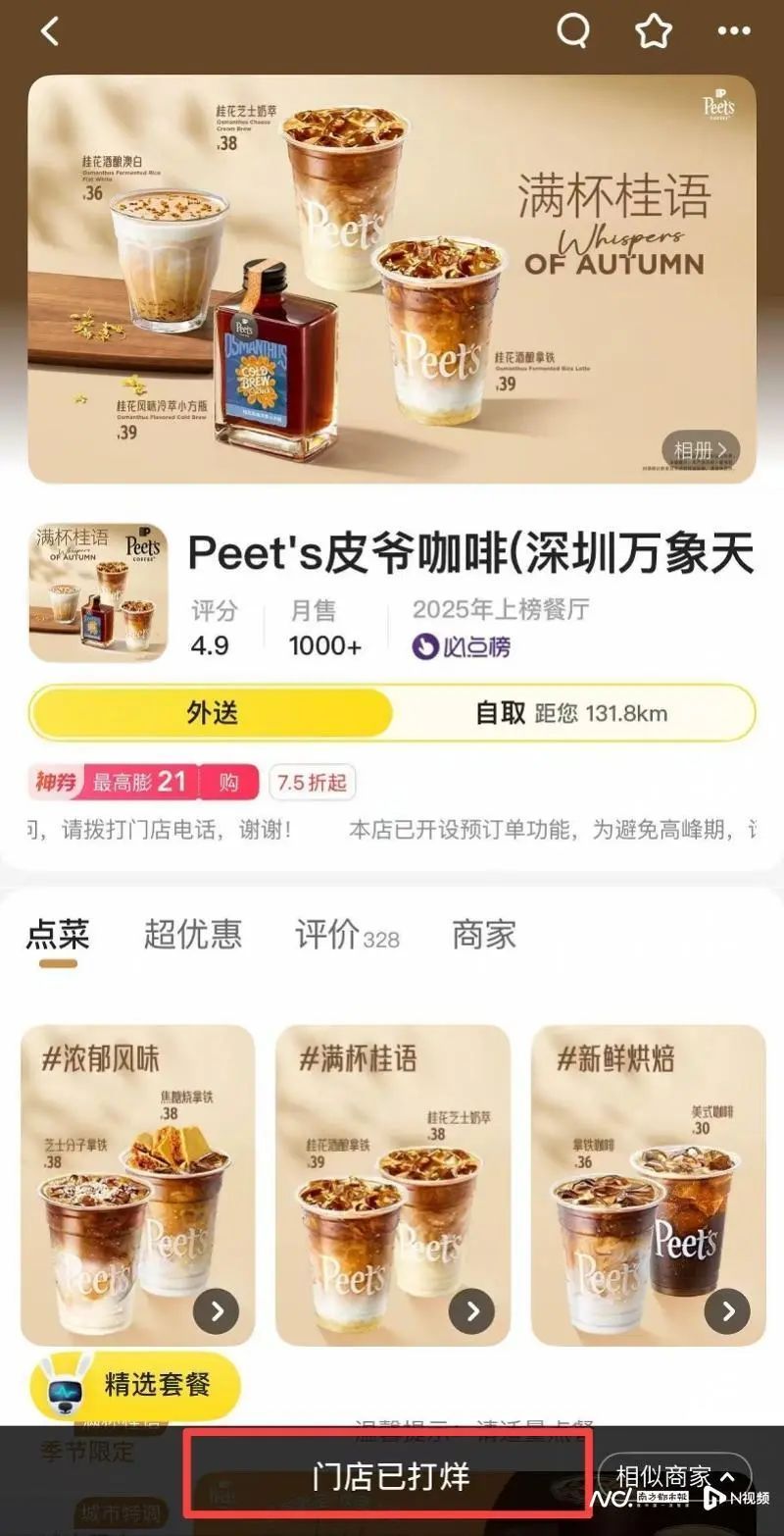 近日优选策略,全球知名咖啡连锁品牌、被誉为“星巴克的祖师爷”的皮爷咖啡(Peet’s Coffee)在华南地区的首店——深圳万象天地店已显示暂停营业,有消息称是因为租约到期后关店。